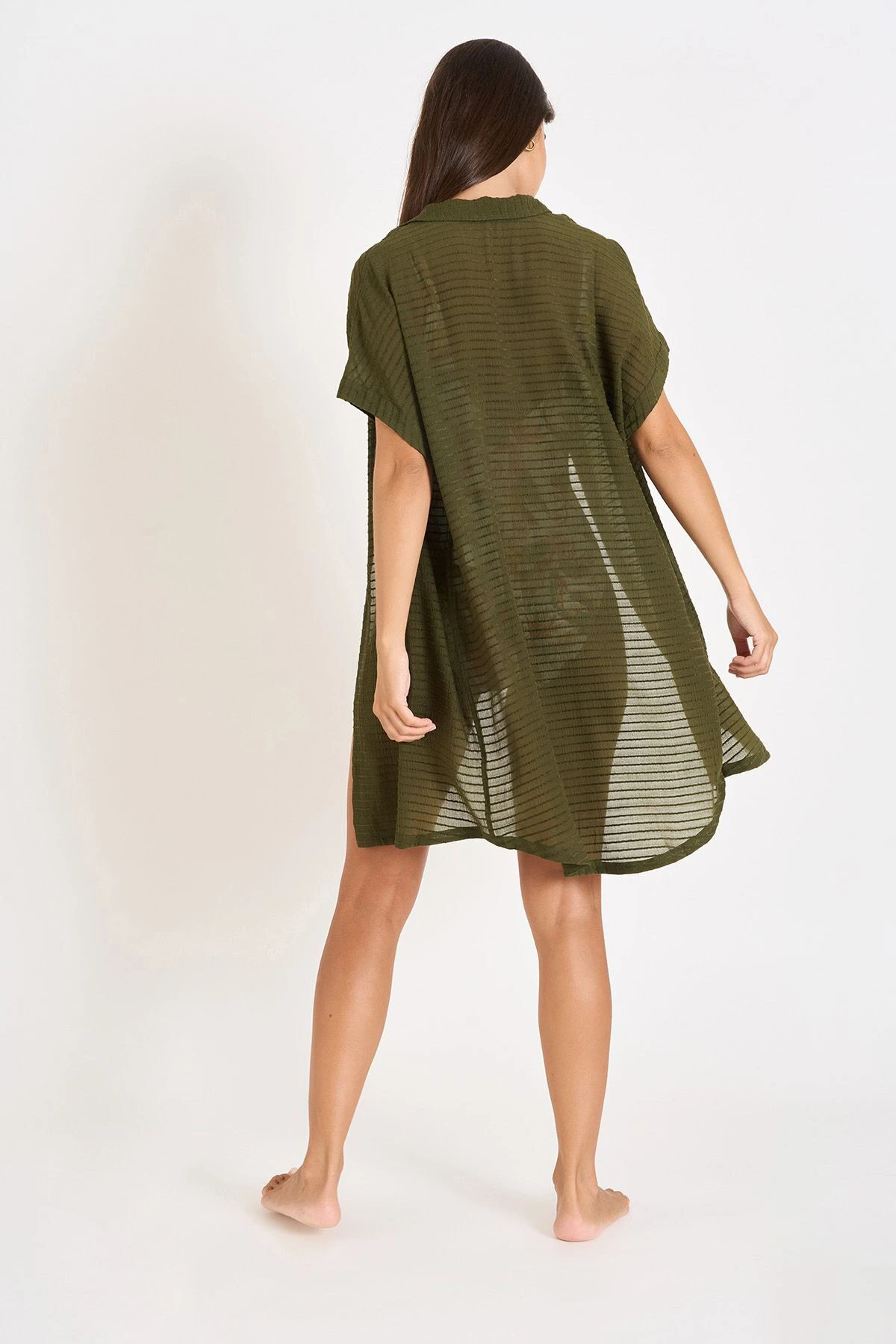 Chemise kaki PALACA SOLOBEACH. Vous pourrez porter cette chemise avec votre maillot de bain Livia préféré ou pour parfaire vos tenues estivales.
