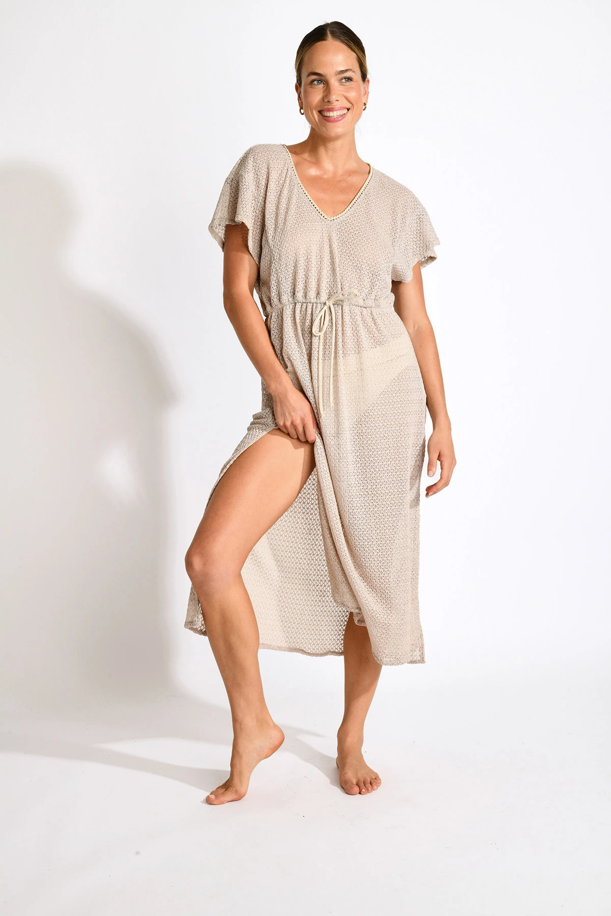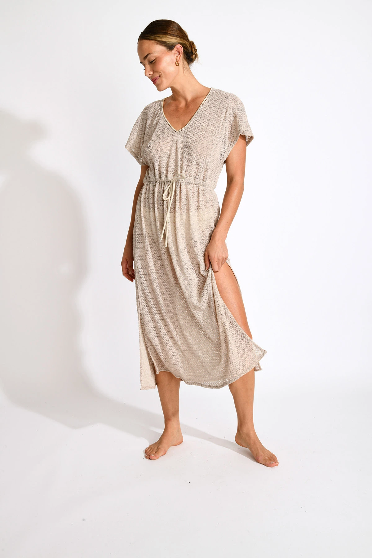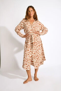 Tunique longue couleur sable AKYRA ELDORADO : cette tunique élégante arbore un décolleté en V flatteur et des manches courtes, parfaits pour un look décontracté et chic. Son cordon à la taille permet de resserrer et de souligner la silhouette, offrant ainsi un ajustement personnalisé. Conçue dans une matière légère, elle est idéale pour les journées ensoleillées ou les soirées estivales.