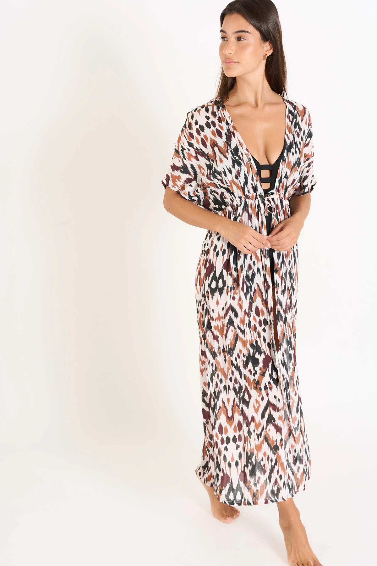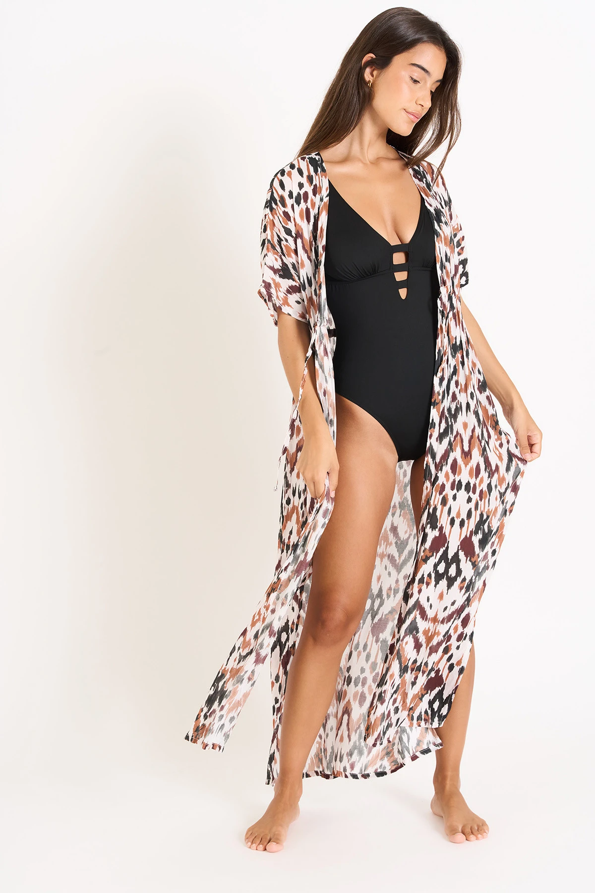 Kimono de plage imprimé animal LIZAE VOILBANGKA. C’est la pièce indispensable à avoir dans son dressing d’été ! A porter à la plage ou en ville, cette pièce apportera une touche ultra féminine à votre look.